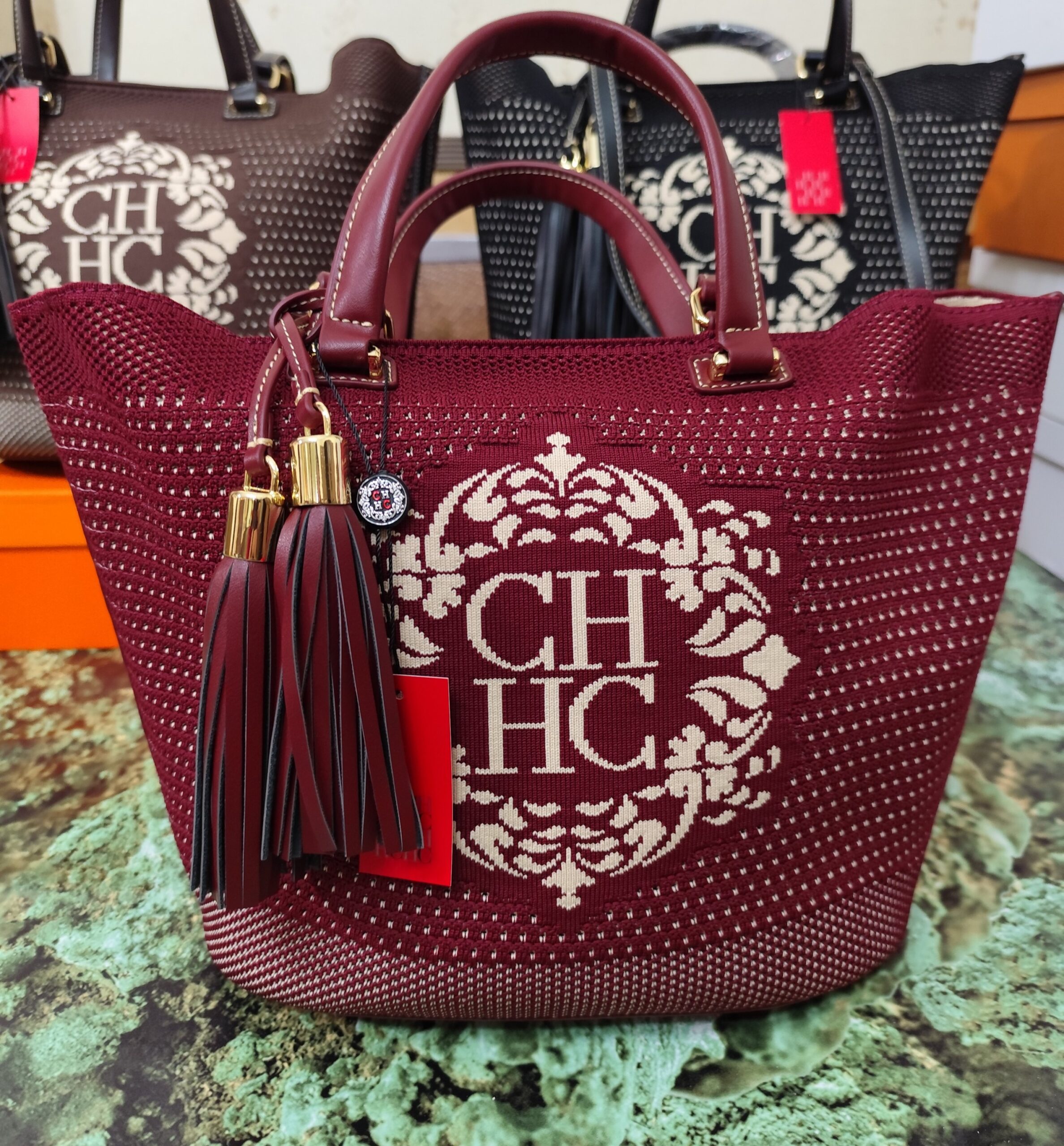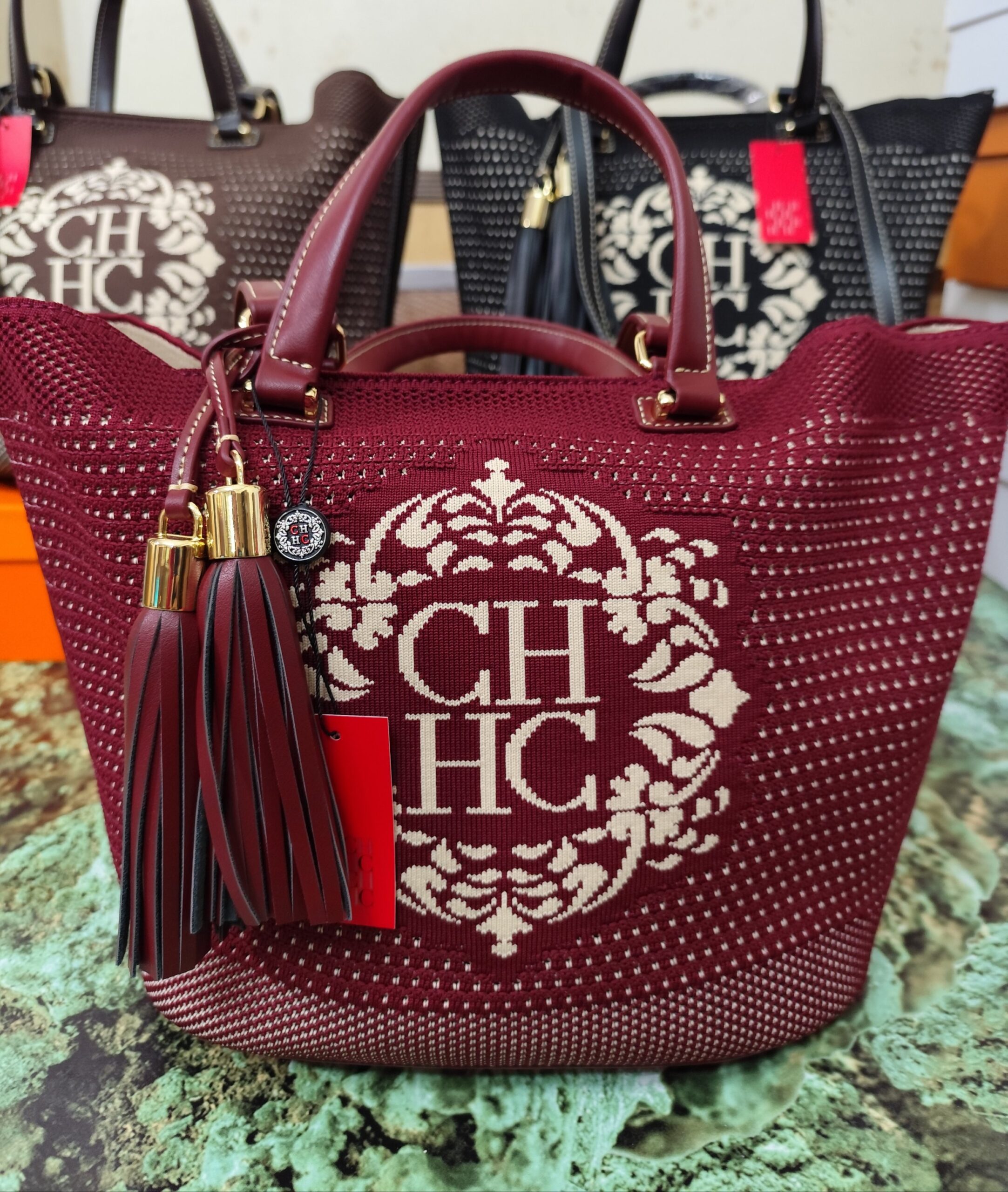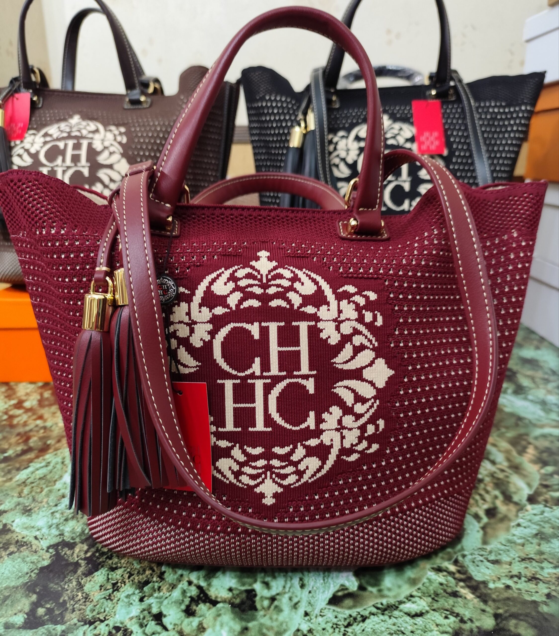 Bolsos CH, alta calidad, color burdeos.