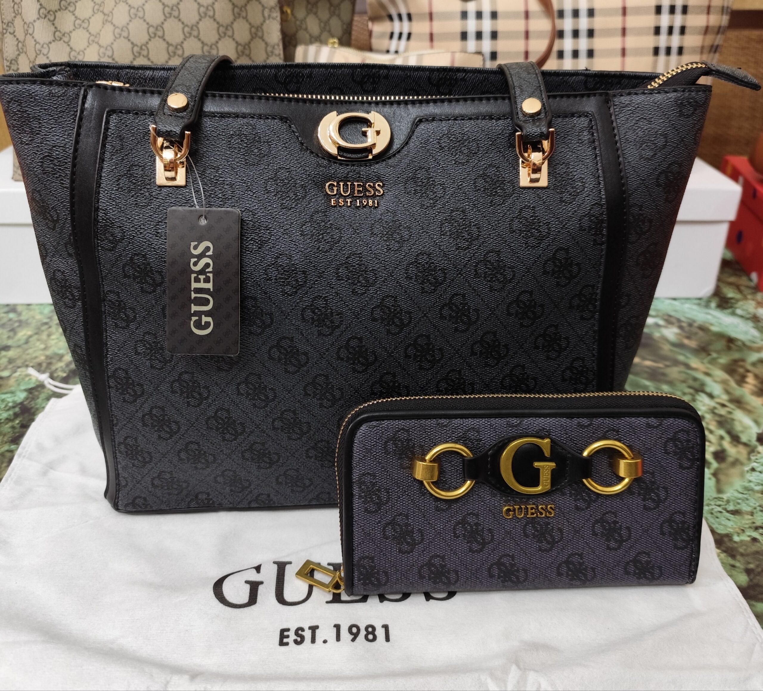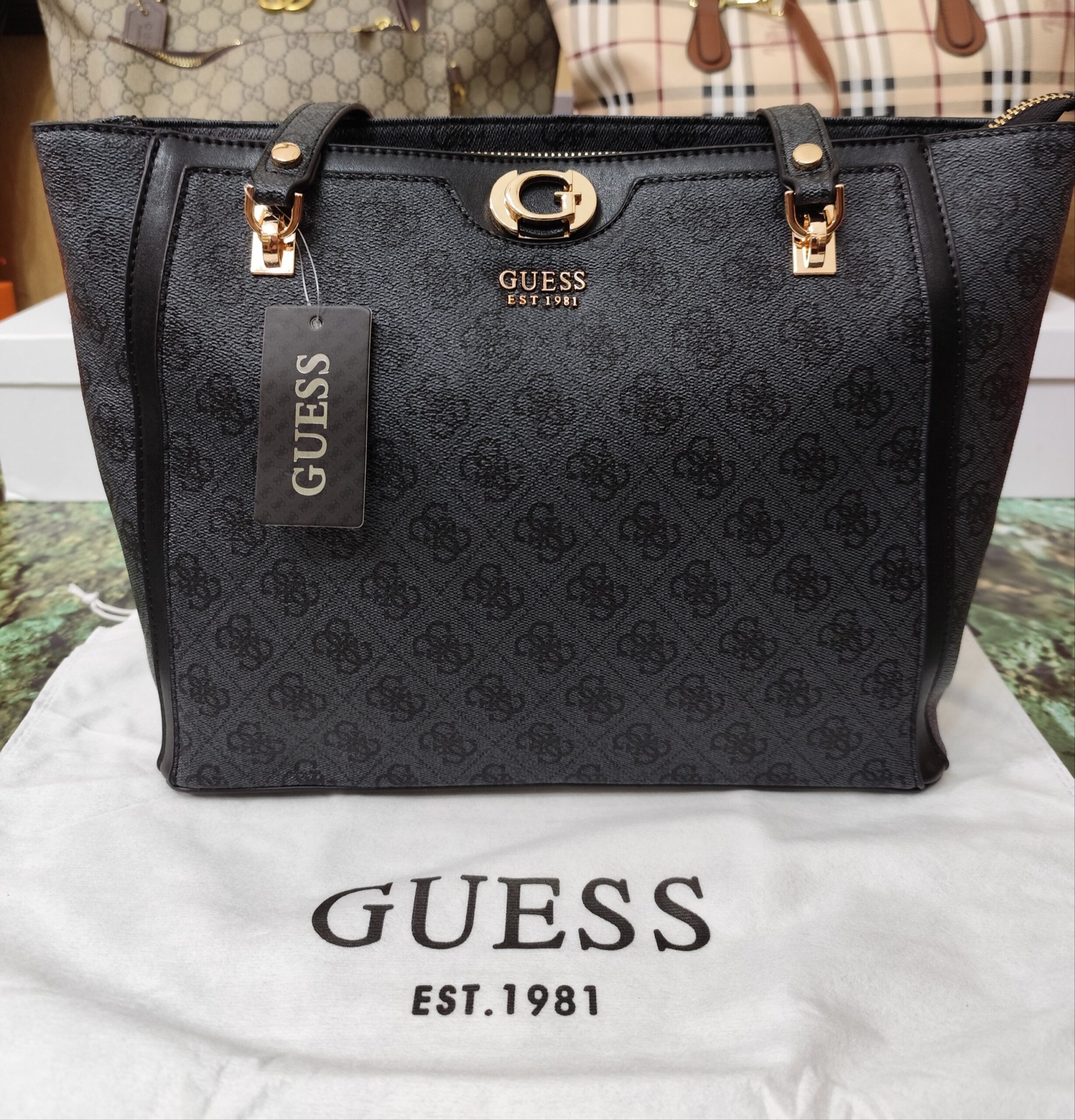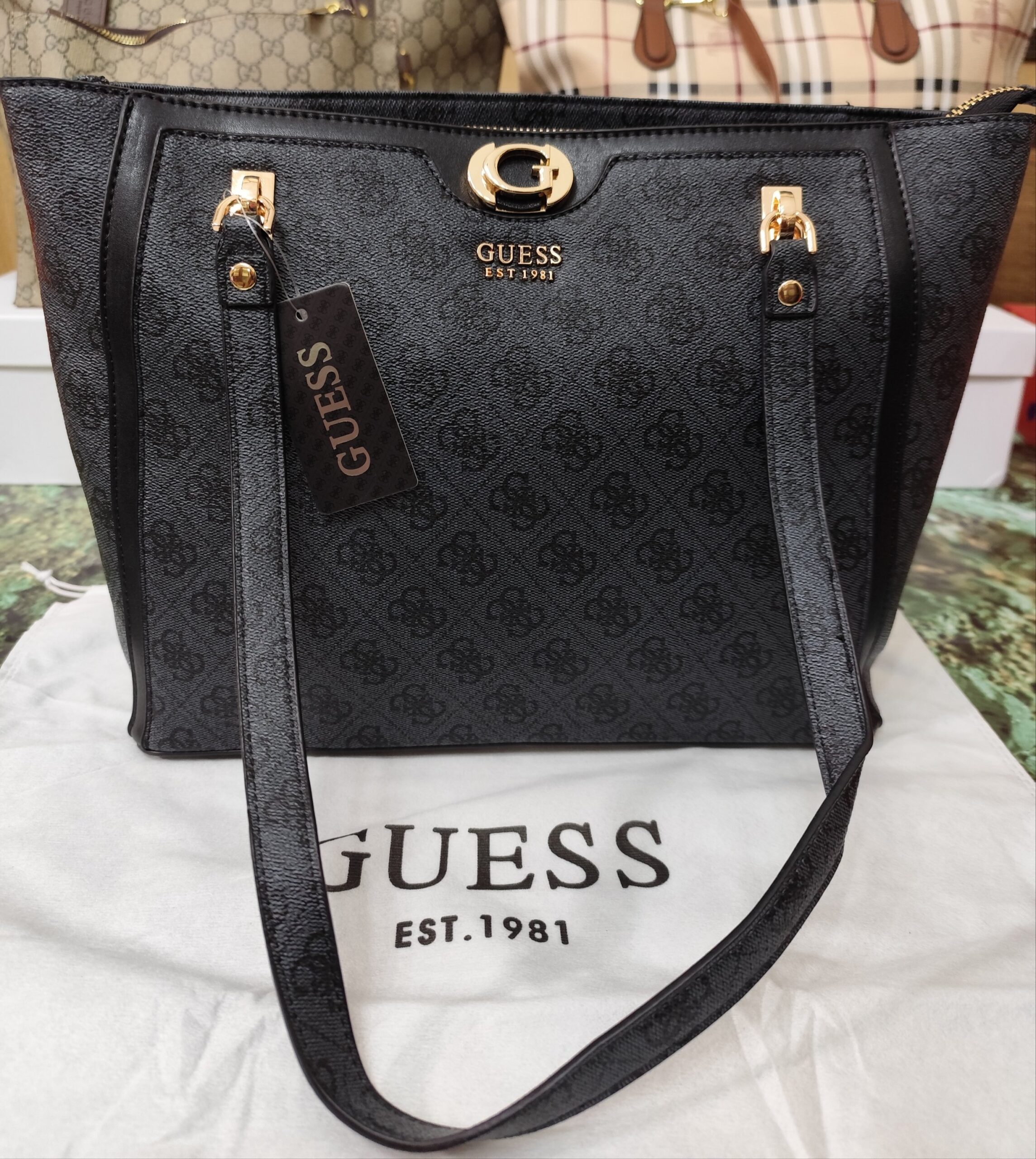 Bolsos GS, shopper estampado negro.Viene con su guardapolvos de tela. Tiene su cartera opcional a juego (25€).