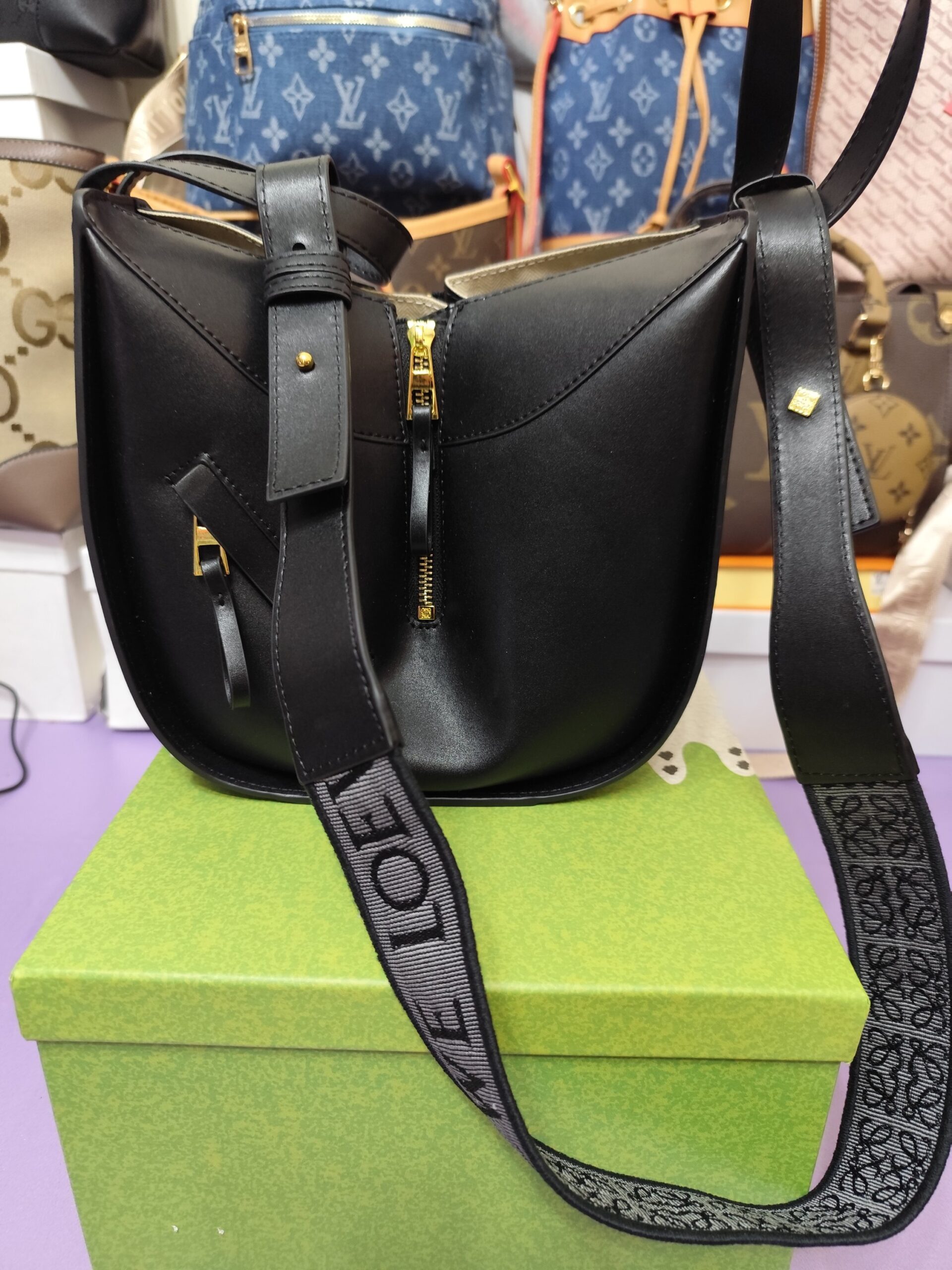 Bolsos LOE, alta calidad triple A,modelo Hammock negro. Lleva el asa de lona grabada .Viene con guardapolvos, certificado y caja. Tiene parte en piel.