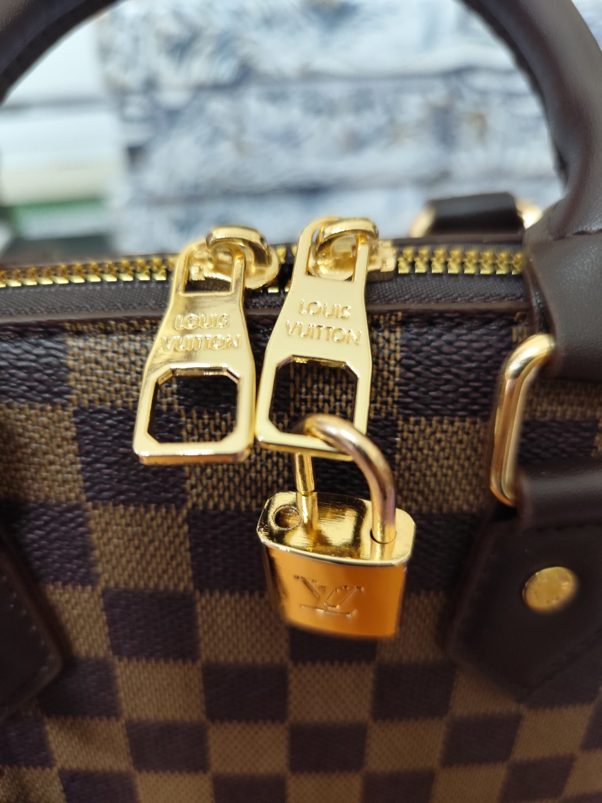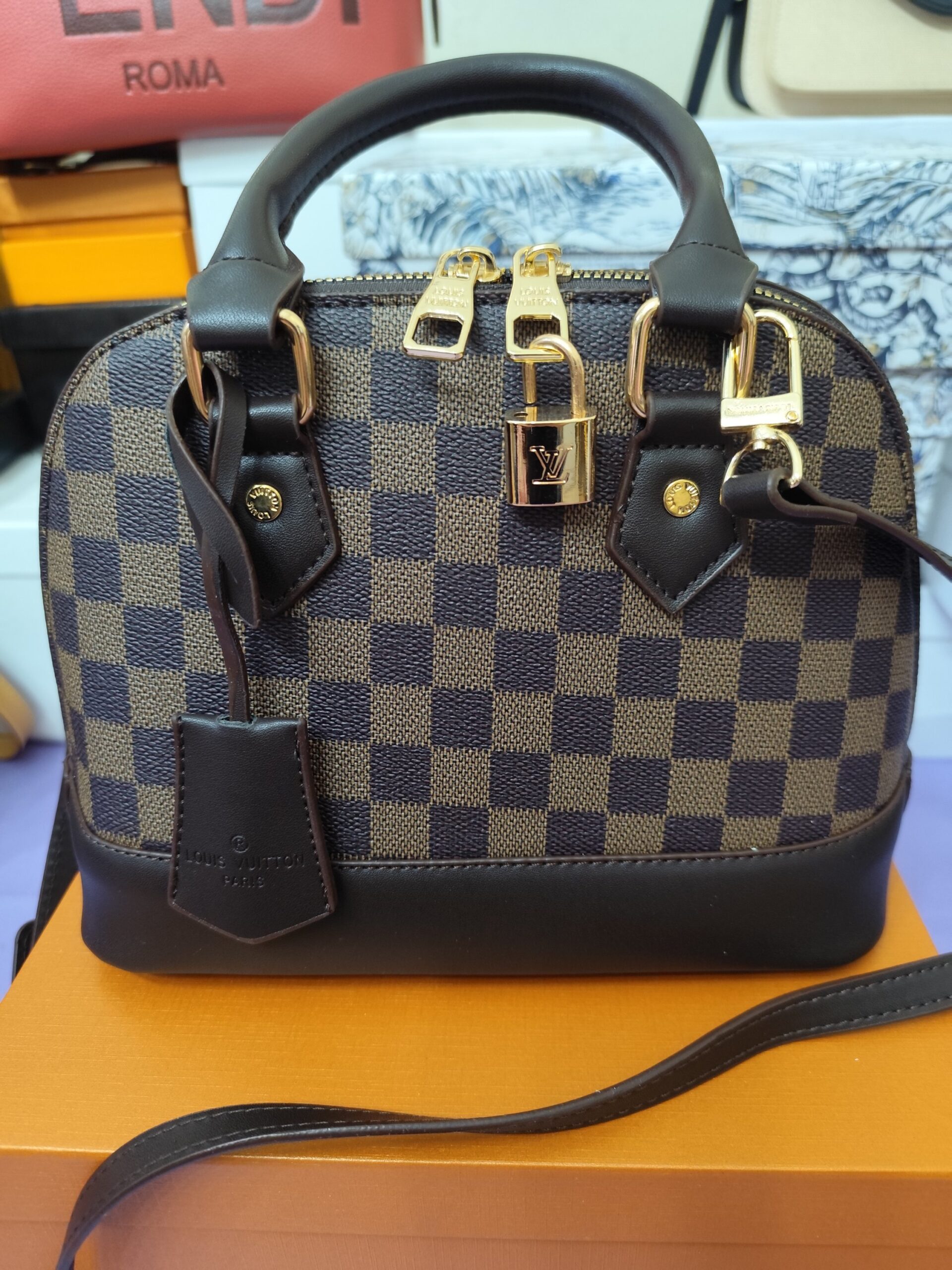 Bolsos LV, alma mediano 25cm , cuadritos marrón. Viene con guardapolvos.