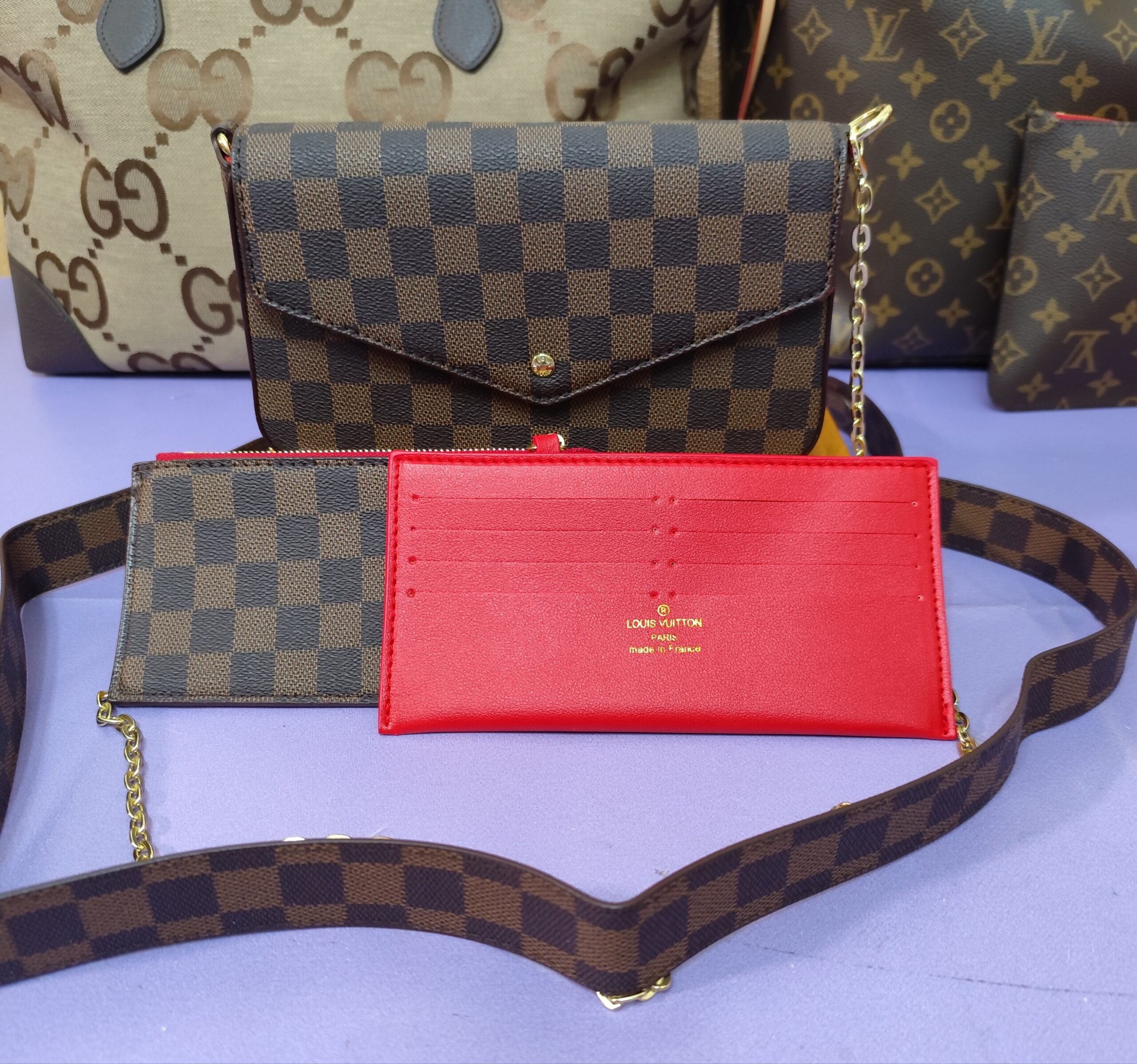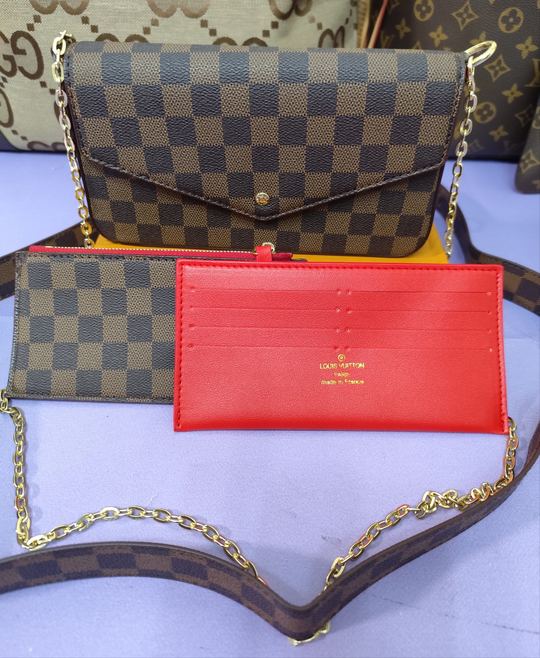 Bolsos LV, felice cuadritos marrón. Trae 2 asas ( una ancha de piel y otra de cadena). Viene con guardapolvos, certificado y caja. Interior rojo.