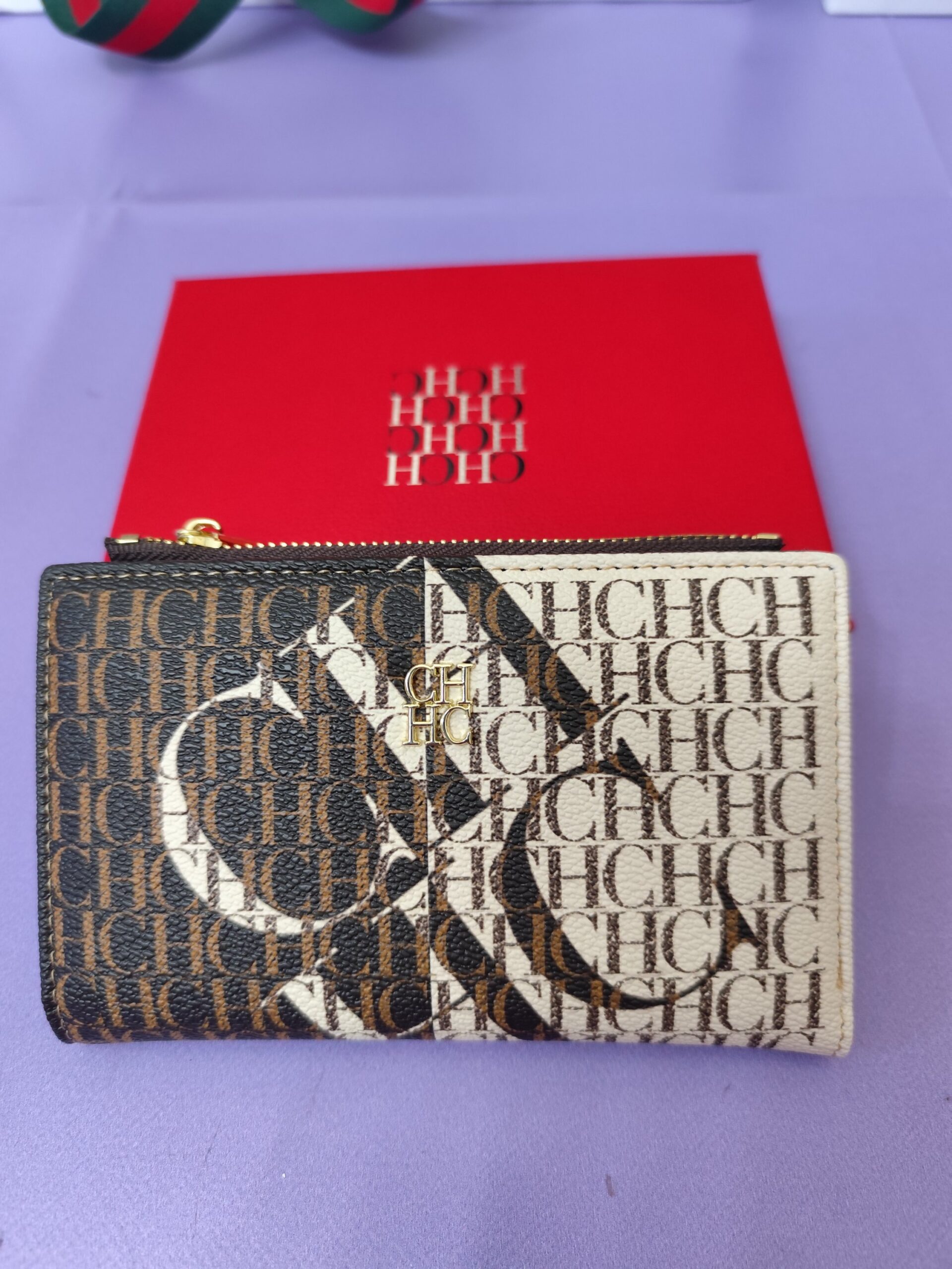 Cartera CH grande, marrón /blanco letras.