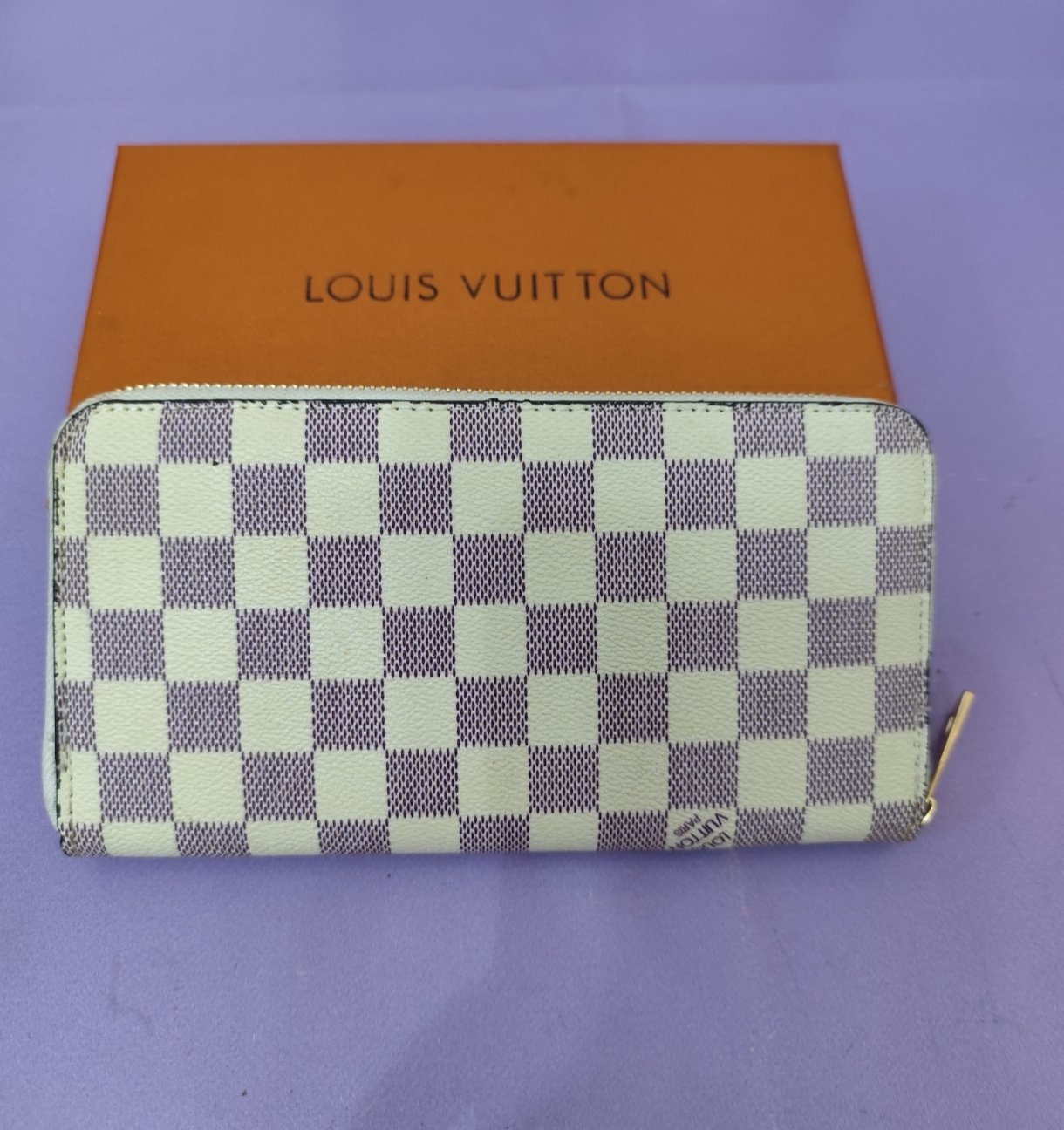 Cartera LV grande, cuadritos blanco