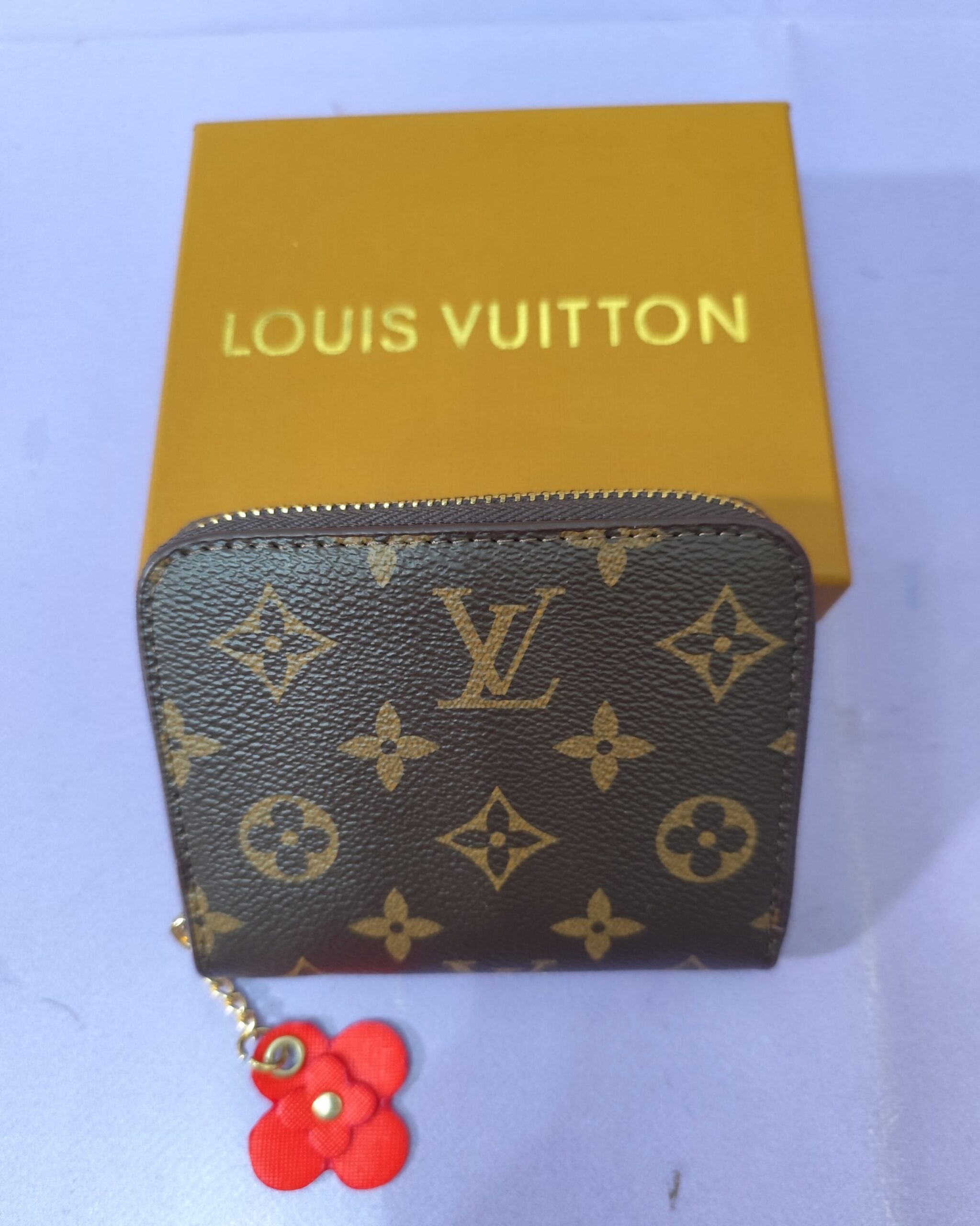 Cartera LV, pequeña, marrón con flor roja. Viene con su caja.