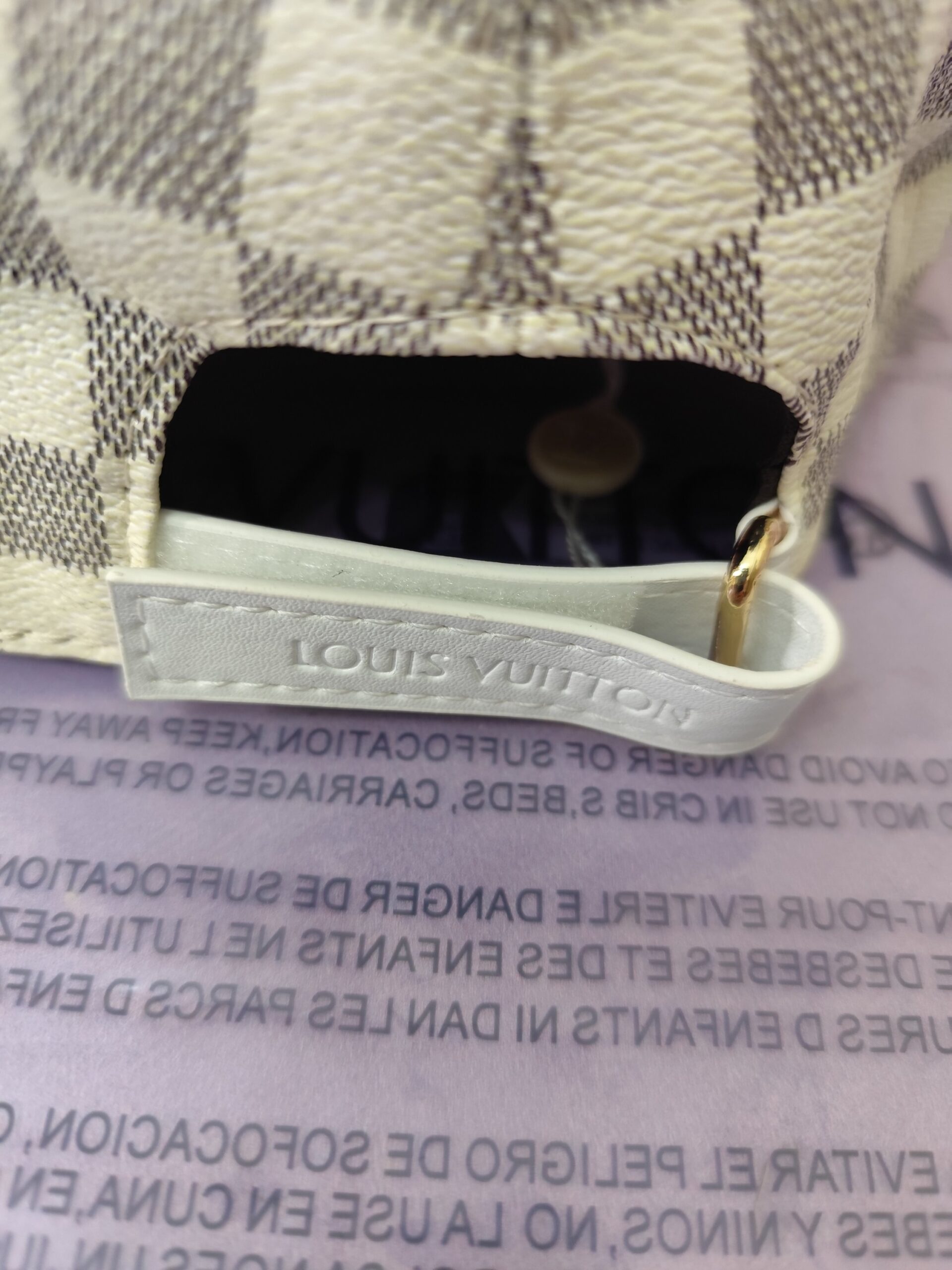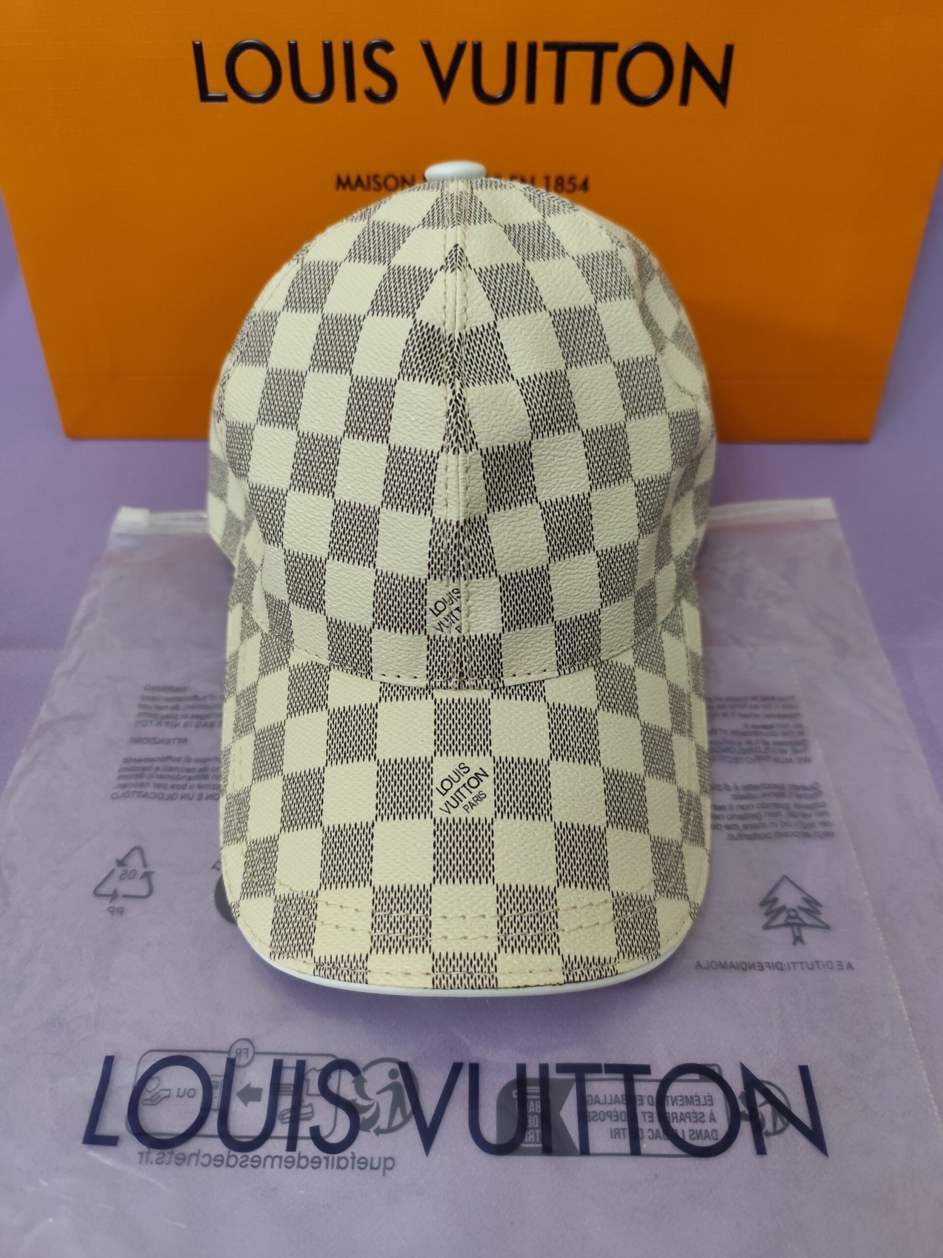 Gorra LV, calidad superior, piel y cuadritos blancos.