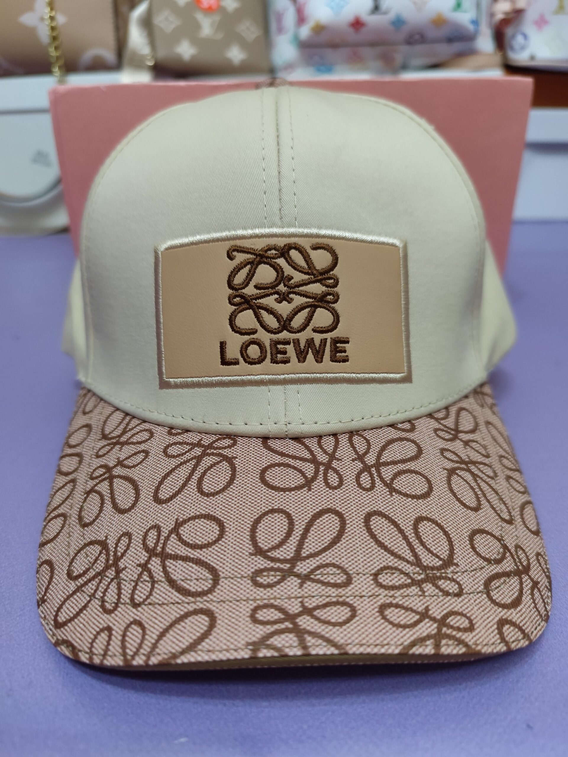 Gorra LV, calidad superior, beige con visera en piel marrón.